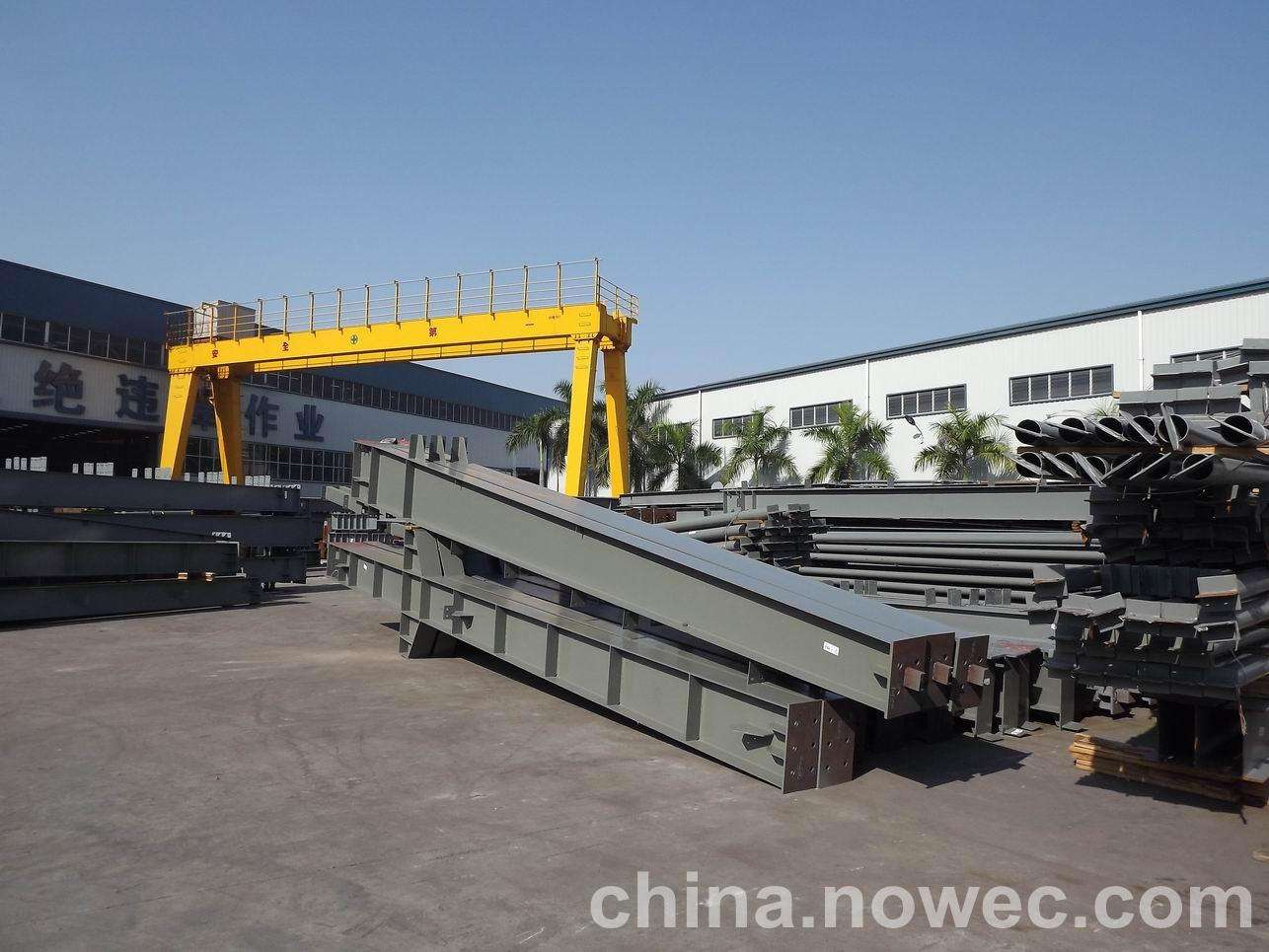 条状单元一般沿长跨方向分割,其宽度约为1~3个网格,其长度为l2或l2/2(l2为短跨跨距)。块状单元一般沿邵武网架平面纵横向分割成矩形或正方形单元。每个单元的重量以现有起重机能胜任为准。条(块)与条(块)之间可以直接拼装,也可空一网格在高空拼装。由于条(块)状单元是在地面拼装,因而高空作业量较高空散装法大为减少,拼装支架也减少很多,又能充分利用现有起重设备,故较经济。这种安装方法适用于分割后网架的钢度和受力状况改变较小的各类中小型网架,如两向正交正放四角锥、正放抽空四角锥等网架。